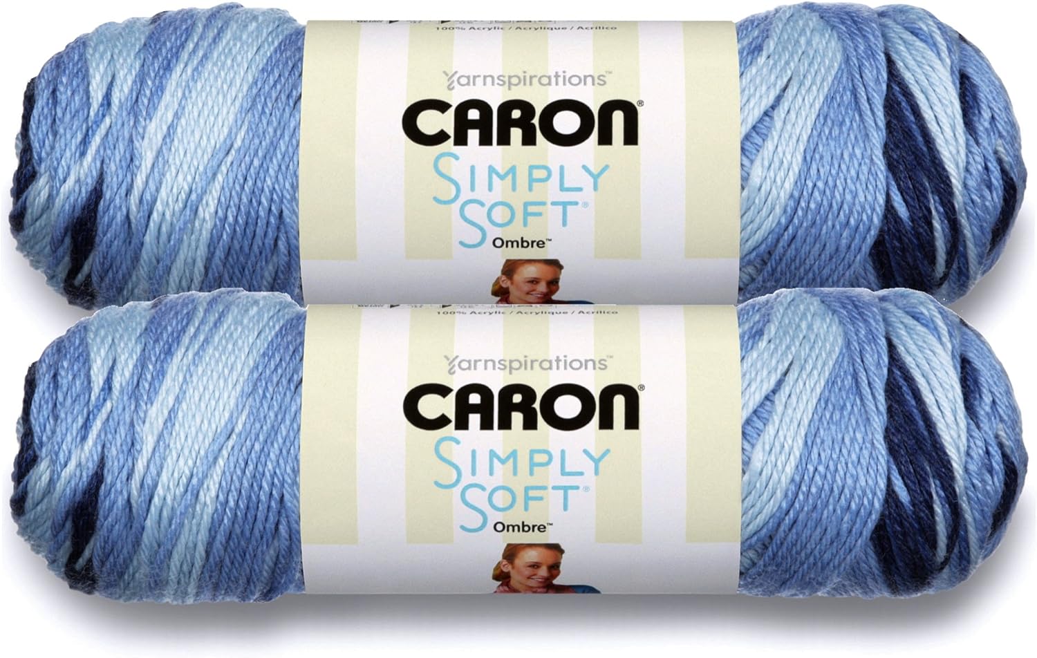 Amazon Com Caron Simply Soft Bulk Buy Ombres 100 Acrylic Yarn 2 Pack 5 Oz Skeins Saturday Blue Jeans